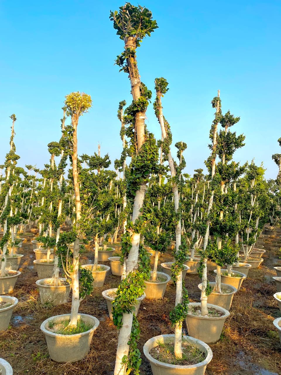 Ficus Topiary and Bonsai plants are known for their strong roots, dense foliage, and long life. These plants are carefully shaped over time, giving them an artistic look while keeping them healthy and natural. The green leaves stay fresh all year, making them a reliable choice for outdoor decoration.